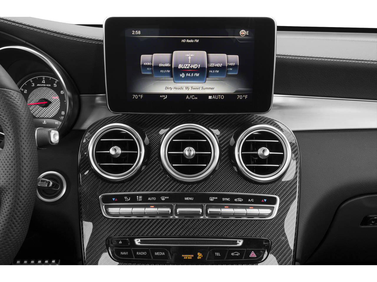14 altavoces, 20 llantas AMG® de 5 radios dobles, frenos de disco en las 4 ruedas, frenos ABS, suspensión adaptativa, aire acondicionado, llantas de aleación, radio AM/FM: SiriusXM, reposacabezas delanteros antilátigo, volante con inclinación automática, retrovisores exteriores con atenuación automática, retrovisor interior con atenuación automática, suspensión con nivelación automática, climatizador automático, relación de eje: Por determinar, Asistencia de frenado, Parachoques: del color de la carrocería, Sistema de sonido envolvente Burmester®, Reproductor de CD, Airbag con sensor de asiento infantil, Faros con apagado retardado, Compartimento en la puerta del conductor, Espejo de cortesía para el conductor, Airbags frontales de doble impacto, Airbags laterales delanteros de doble impacto, DVD-Audio, Control electrónico de estabilidad, sistema de comunicación de emergencia: mbrace, cámara de aparcamiento trasera exterior, suspensión independiente en las cuatro ruedas, barra estabilizadora delantera, asientos delanteros tipo baquet, reposabrazos central delantero, aire acondicionado de doble zona delante, luces de lectura delanteras, faros totalmente automáticos, transmisor para puerta de garaje: Homelink, inserciones de madera auténtica en el salpicadero, retrovisores exteriores calefactables, asientos delanteros calefactables, entrada iluminada, airbag de rodillas, volante de cuero, Aviso de presión baja en los neumáticos, Asiento con memoria, Airbag con sensor de ocupante, Indicador de temperatura exterior, Airbag de techo, Consola de techo, Alarma de pánico, Compartimento en la puerta del acompañante, Espejo de cortesía para el acompañante, Reposacabezas delanteros ajustables eléctricamente, Retrovisores exteriores eléctricos, Asiento del conductor con ajuste eléctrico, Asientos delanteros calefactables con ajuste eléctrico, Portón trasero eléctrico, Asiento del acompañante con ajuste eléctrico, Dirección asistida, Elevalunas eléctricos, Sistema de audio premium: COMAND®, Sistema de datos de radio, Radio: Audio 20 con CD/DVD individual, Limpiaparabrisas con sensor de lluvia, Barra estabilizadora trasera, Luces antiniebla traseras, Luces de lectura traseras, Reposabrazos central en los asientos traseros, Desempañador de la luneta trasera, Limpiaparabrisas de la luneta trasera, Entrada sin llave a distancia, Bacas: solo rieles, Sistema de seguridad, Control de velocidad, Dirección sensible a la velocidad, Asiento trasero abatible por partes, Volante deportivo, Memoria del volante, Mandos de audio en el volante, Tacómetro, Volante telescópico, Volante inclinable, Control de tracción, Ordenador de a bordo, Espejos con intermitentes, Limpiaparabrisas de intermitencia variable y Radio con banda meteorológica.