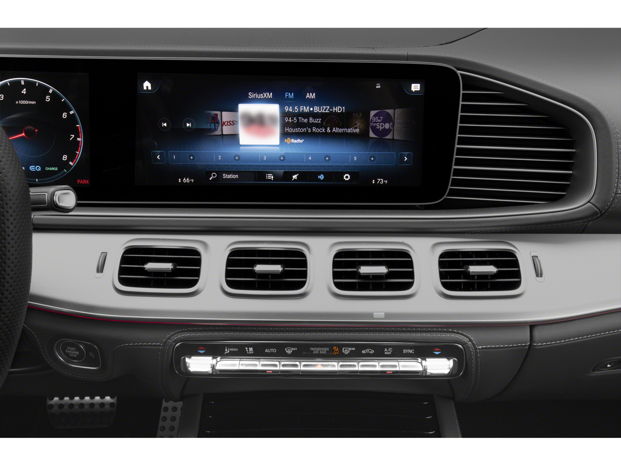 - Radio: Pantalla multimedia MBUX de 12,3" con pantalla táctil —incluye: interfaz de usuario MBUX, Apple CarPlay, Android Auto, carga inalámbrica NFC (disponibilidad pospuesta), sistema de sonido envolvente Burmester, integración con smartphone, 5 puertos USB (3 delante, 2 detrás), navegación MB con información de tráfico en tiempo real y actualizaciones de mapas durante 3 años, y Mercedes Me Connect