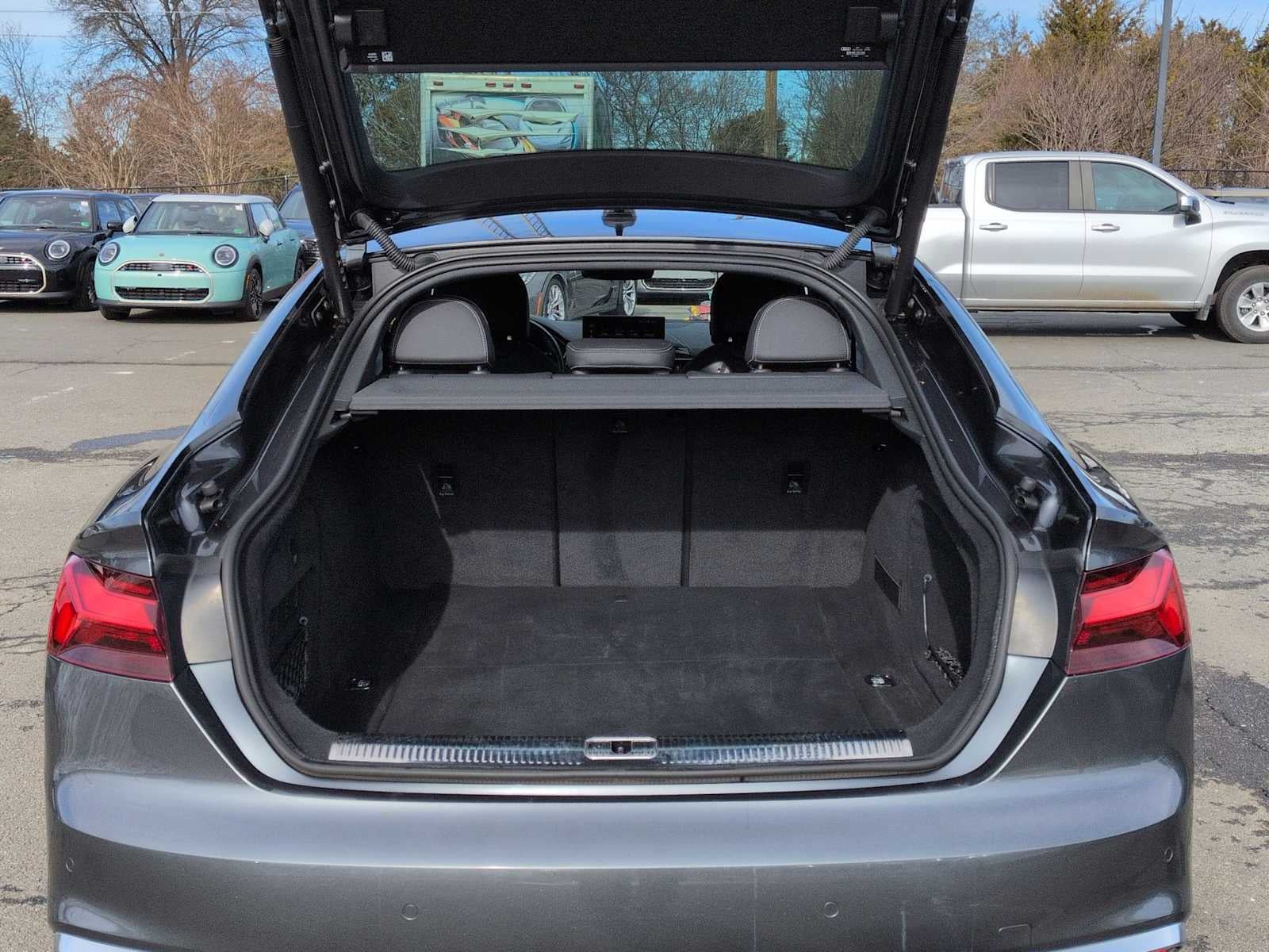 Paquete Convenience (sistema de alarma con sensores de movimiento, llave avanzada Audi, Audi Side Assist con Pre Sense Rear, retrovisores exteriores con atenuación automática y memoria, memoria del asiento del conductor y SiriusXM con 360L), Premium Plus (2 puertos USB de carga traseros, Audi Virtual Cockpit Plus, sistema de sonido Bang & Olufsen con sonido 3D, consola central y reposabrazos de las puertas revestidos de cuero sintético, retrovisores exteriores plegables eléctricamente, sistema de cámara de visión superior y base de carga inalámbrica para teléfonos), Frenos de disco en las 4 ruedas, frenos ABS, aire acondicionado, llantas de aleación, radio AM/FM, reposacabezas delanteros antilatigazo, faros automáticos de luz larga, espejo retrovisor con atenuación automática, control automático de temperatura, asistencia de frenado, parachoques del color de la carrocería, brújula, faros con apagado retardado, Compartimento en la puerta del conductor, espejo de cortesía para el conductor, airbags frontales duales, airbags laterales frontales duales, control electrónico de estabilidad, sistema de comunicación de emergencia: Audi connect CARE, sistema de sonido premium mejorado, cámara de aparcamiento trasera exterior, suspensión independiente en las cuatro ruedas, barra estabilizadora delantera, asientos delanteros individuales, reposabrazos delantero central, aire acondicionado delantero de doble zona, faros antiniebla delanteros, luces de lectura delanteras, transmisor de puerta de garaje: HomeLink, inserción de madera auténtica en la consola, inserción de madera auténtica en el salpicadero, inserción de madera auténtica en los paneles de las puertas, retrovisores exteriores calefactables, asientos delanteros calefactables, asientos deportivos delanteros calefactables, volante calefactable, entrada iluminada, airbag para las rodillas, superficies de los asientos de cuero, pomo de la palanca de cambios de cuero, volante de cuero, aviso de presión baja de los neumáticos, airbag con sensor de ocupantes, indicador de temperatura exterior, airbag de techo, Consola superior, alarma de pánico, compartimento en la puerta del acompañante, espejo de cortesía para el acompañante, reposacabezas delanteros ajustables eléctricamente, retrovisores eléctricos, asiento del conductor eléctrico, portón trasero eléctrico, techo solar eléctrico, asiento del acompañante eléctrico, dirección asistida, elevalunas eléctricos, sistema de datos de radio, radio: sistema de sonido Audi, limpiaparabrisas con sensor de lluvia, aire acondicionado trasero, barra estabilizadora trasera, luces de lectura traseras, Apoyabrazos central en los asientos traseros, Desempañador de la luneta trasera, Entrada sin llave a distancia, Control de velocidad, Dirección sensible a la velocidad, Limpiaparabrisas sensibles a la velocidad, Asientos traseros abatibles por separado, Controles de audio en el volante, Tacómetro, Volante telescópico, Volante inclinable, Control de tracción, Ordenador de a bordo, Retrovisores con intermitentes, Limpiaparabrisas intermitentes variables y Llantas: diseño de 18 pulgadas con 5 radios dobles.