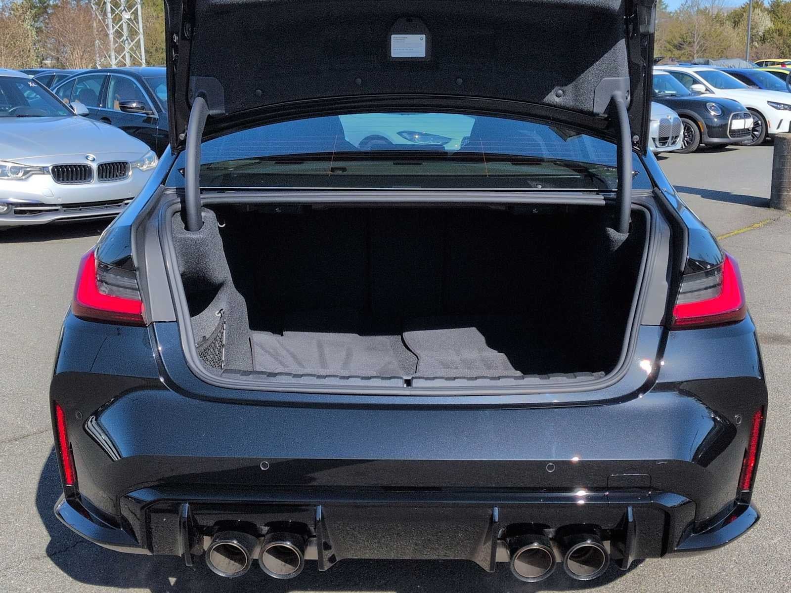 CARFAX limpio. CARFAX: un solo propietario. BMW M3 Competition 2024 con tracción total, cambio automático Steptronic de 8 velocidades, color Negro Zafiro Metalizado, motor 3.0L I6 turboalimentado DOHC 24V LEV3-ULEV70 de 543 CV, compatibilidad con Apple CarPlay y Android Auto, pantalla curva BMW con HUD, paquete Connected Pro, paquete Executive, tapicería de cuero Merino extendida, Cámara de aparcamiento trasera, faros totalmente automáticos, sistema de sonido envolvente harman/kardon, altavoces harman/kardon®, asientos delanteros calefactables, volante calefactable, soporte lumbar, paquete M Drivers, luces M Shadowline, asientos deportivos M, asiento con memoria, navegación, sistema de navegación, paquete de asistencia al aparcamiento, asistente de aparcamiento Plus, Asiento del conductor eléctrico, Asientos delanteros eléctricos, Asiento del acompañante eléctrico, Portón trasero eléctrico, Arranque remoto del motor, Salpicadero SensaTec, Asiento trasero abatible por partes, Alerón, Mandos de audio en el volante, Retrovisores con intermitentes, Llantas: 19x9,5 delanteras y 20x10,5 traseras M Black, Carga inalámbrica de dispositivos.